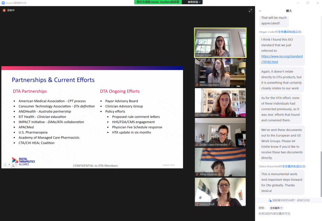 6月15日,国际数字疗法协会(DTA)成功举办半年度会员大会,Pear Therapeutics, Akili Interactive Labs和Omada Health等全球50余家数字疗法第一梯队企业齐聚一堂,共话数字疗法行业发展。微脉作为国内首批获得DTA认证的中国企业受邀出席,并与协会众成员单位共同就数字疗法未来发展方向,如何推动相关法规与监督机制建设,以及建立国际统一的数字疗法评审标准等议题展开讨论。